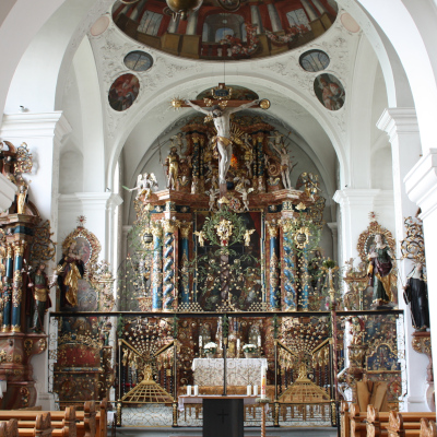 St. Remigius Münsterlingen, ehemalige Klosterkirche. Blick Richtung Altarraum.