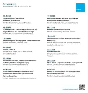 Der Round Table wird zusätzlich als Live-Stream übertragen. Bei Interesse an einer virtuellen Teilnahme wenden Sie sich bitte mit einer kurzen Nachricht per E-Mail an hiwis.ochsner@uni-konstanz.de, um den Zugangslink zu erhalten.