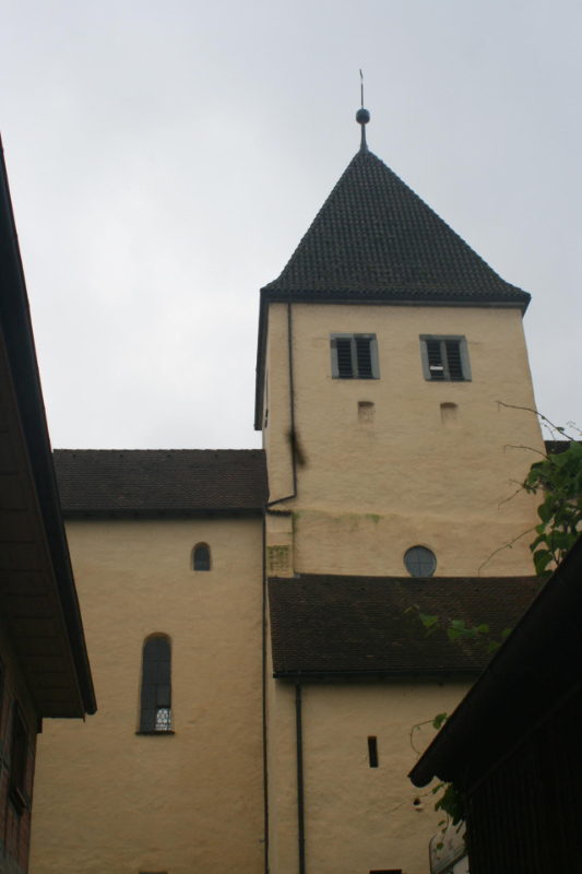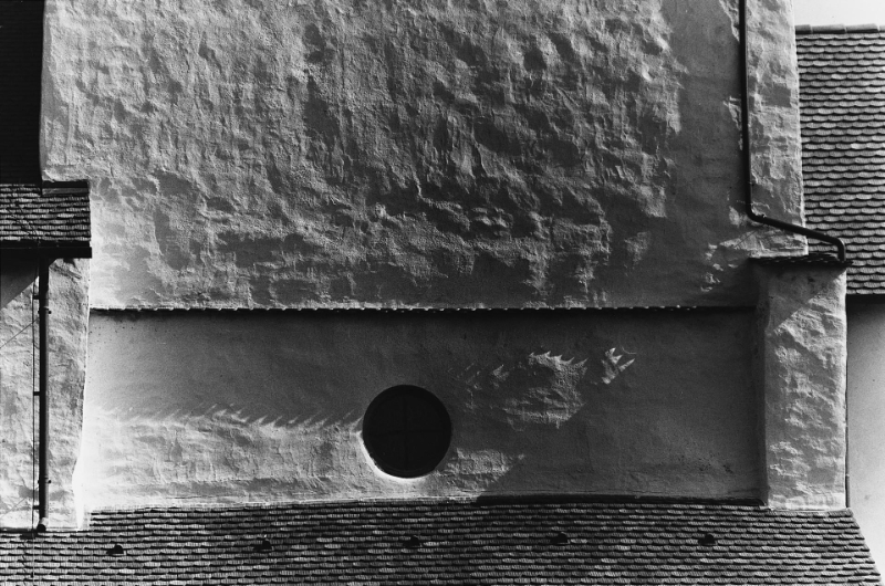 An der Nordseite ist die Baunaht im Vierungsturm auf Traufhöhe des Chordaches gut zu erkennen. Sie entstand, als man noch vor Fertigstellung der Kirche den Plan revidierte, ein Querhaus in Form von Konchen an die Vierung anzubauen.