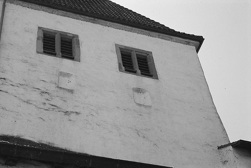 An der Turmnordwand zeichnen sich unterhalb der großen Schallöffnungen zwei Nischen ab. Sie könnten Fenster des ursprünglichen Baus gewesen sein. Im 14. und 15. Jahrhundert wurde der Turm erhöht und die Schallfenster wurden noch mehrmals verändert.