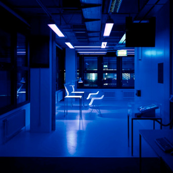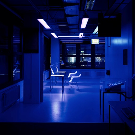 Der Raum S 611 ist der sichtbare Teil des Kunstwerks the 16bit library von Holger Friese. Die Beleuchtung im Raum ändert ihre Farbe in unmerklichen Schritten bei jeder getätigten Ausleihe aus der Unibibliothek Konstanz.