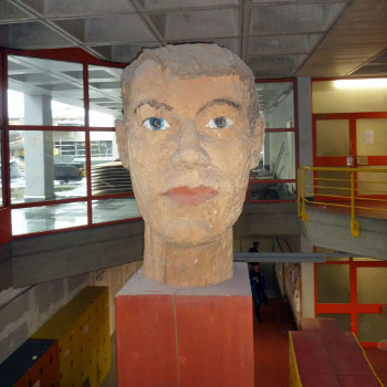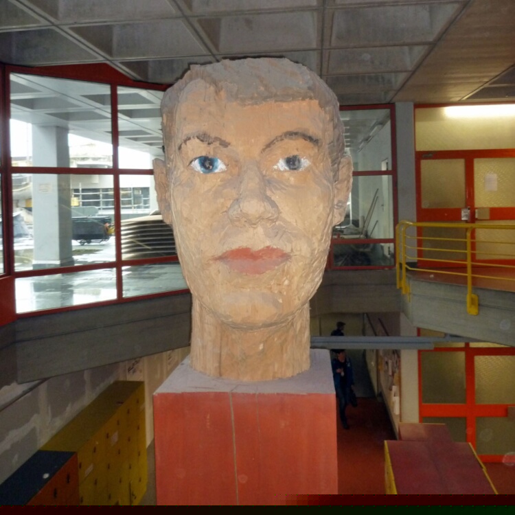 Der riesige Männerkopf, von einem hohen, rot bemalten Holzsockel getragen, wurde mit diesem zusammen aus einem einzigen Block von Wawa-Holz geschaffen. Der Kopf mit kurzem Haar und ausdrucksloser Mimik ist kein Porträt, sondern ... mehr anzeigenDie Skulpturen von Balkenhol wurden im Frühjahr 2023 mit einem Holzgehäuse vor den aktuellen Bauarbeiten geschützt und können daher nicht besichtigt werden.