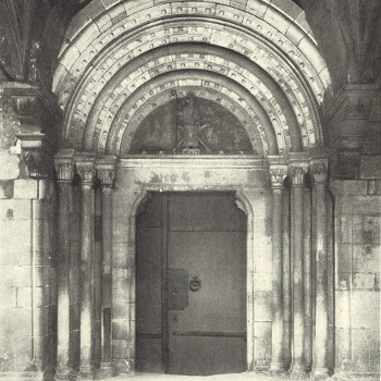 Nikolausportal, spätromanische Bauphase, vor 1218, figürliche Malerei, wohl aus spätgotischer Zeit