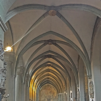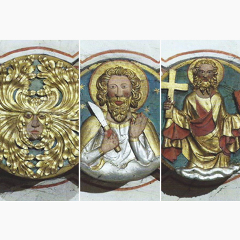 Als Schlussstein wird der Keilstein am höchsten Punkt eines Bogens, einer Kuppel oder eines Rippengewölbes bezeichnet. Erst durch den Schlussstein werden die Architekturglieder der Rippen zu einer selbsttragenden Konstruktion, was ihm eine besondere Bedeutung verleiht.Die Schlusssteine, die wir genauer betrachten möchten, befinden sich in den Seitenschiffen. Sie wurden in der 1. Hälfte ...