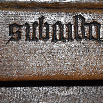Der an der Nordseite zu findende Schriftzug konnte bisher weder vollständig entziffert noch gedeutet oder zugeordnet werden.
