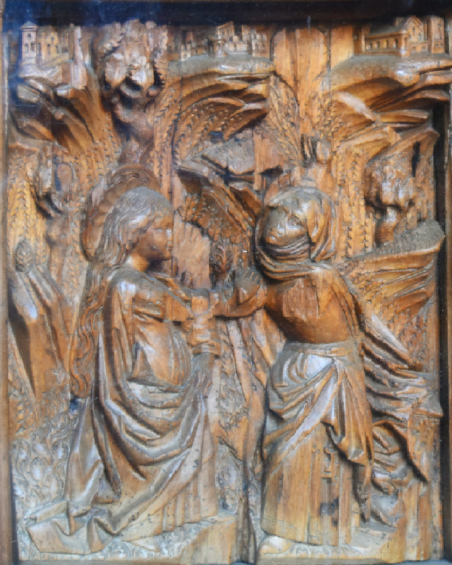 Die mit Jesus Christus schwangere Jungfrau Maria sucht ihre Cousine Elisabeth auf, die ihrerseits mit Johannes dem Täufer schwanger ist.