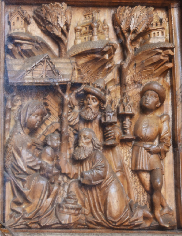 Die Hl. Drei Könige bringen dem Christuskind ihre Opfergaben dar.