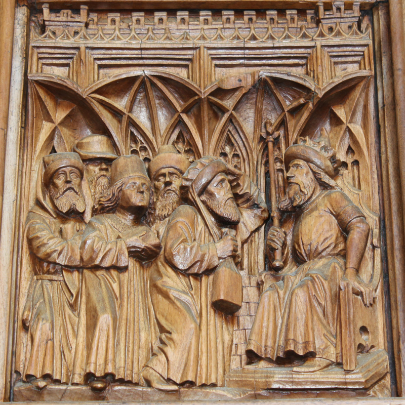 Der regierende König der Juden, Herodes, befragt seine Schriftgelehrten und Priester nach dem Geburtsort des Messias.