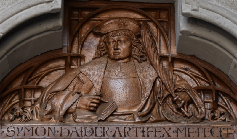 Die Brustreliefs weisen eine freie und gelöste Form auf. Dehio (Handbuch der deutschen Kunstdenkmäler III) verlegt sie nicht in die Zeit um 1470, sondern datiert sie später, ca. auf das Jahr 1500. Tatsächlich ist damals die Rahmenform angepasst worden und im Zuge dessen die Steinrahmung entstanden. Simon Haider war als Werkstattinhaber längst verstorben und kommt für die Ausarbeitung der Brustreliefs nicht in Frage, wohl aber sein Sohn Hans und dessen Schwager Heinrich Yselin (Gröber 1914, 60).