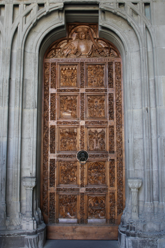 Werkstatt Simon Haider: Rechter Flügel des Westportals des Konstanzer Münsters, ca. 1470. Nussbaumholz, 4,05m x 1,45m.