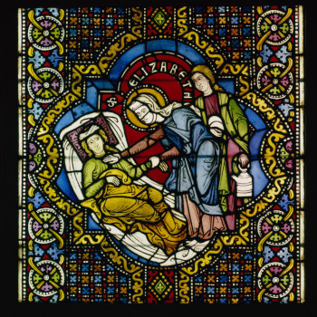 Kurz nach ihrem Tod wurde Elisabeth heiliggesprochen und ihr zu Ehren die Marburger Elisabethkirche errichtet, der früheste einheitliche gotische Kirchenbau Deutschlands. Dort finden wir ein für seine Entstehungszeit (1234—1249) sehr progressives, frühgotisches Medaillonfenster, das ebenfalls dem Leben der Heiligen Elisabeth gewidmet ist. Im Gegensatz zu Konstanz legt das Marburger ... mehr anzeigenKurz nach ihrem Tod wurde Elisabeth heiliggesprochen und ihr zu Ehren die Marburger Elisabethkirche errichtet, der früheste einheitliche gotische Kirchenbau Deutschlands. Dort finden wir ein für seine Entstehungszeit (1234—1249) sehr progressives, frühgotisches Medaillonfenster, das ebenfalls dem Leben der Heiligen Elisabeth gewidmet ist. Im Gegensatz zu Konstanz legt das Marburger Fenster den Schwerpunkt auf die besondere Milde und Wohltätigkeit der Heiligen, die sich in ihrem Wirken – wie auch in den Kompositionen der Bildfelder – den Bedürfnissen der Armen und Kranken unterordnet.In der Neogotik wurden die Gestaltungsprinzipien und Erzählstrategien der Gotik äußerst subtil und umfassend rekapituliert, transformiert und aktualisiert. So war auch Geiges im Sinne des Programms der Neogotik bemüht, die gotische Darstellungsweise möglichst authentisch zu imitieren. Es gilt nun im direkten Vergleich der beiden Glasfenster Momente aufzuspüren, in denen sich die Prägung des Künstlers durch das 19. Jh. in die Gestaltung einschleicht und sich damit die historistische Rezeption der Gotik im 19. Jh. als modifizierende retrospektive Aneignung eines vergangenen Kunststils unter veränderten historischen Vorzeichen selbst entlarvt.