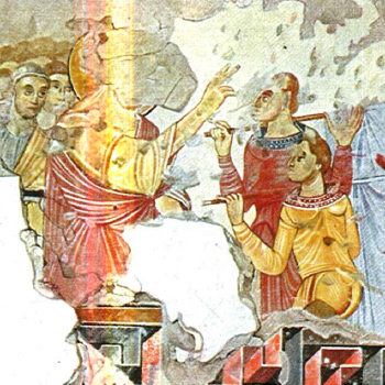 Zu den Wandmalereien von St. Georg gehören drei ornamentale Mäanderbänder. Sie unterstützen die horizontale Gliederung der Architektur in Obergaden, Bildzone und Arkadenbereich. Der obere Mäanderzug setzt direkt unterhalb der Decke an und bildet gemeinsam mit dem mittleren Mäander eine Klammer um die Obergadenfenster und die dazwischen liegenden Aposteldarstellungen. Das mittlere und ... mehr anzeigenZu den Wandmalereien von St. Georg gehören drei ornamentale Mäanderbänder. Sie unterstützen die horizontale Gliederung der Architektur in Obergaden, Bildzone und Arkadenbereich. Der obere Mäanderzug setzt direkt unterhalb der Decke an und bildet gemeinsam mit dem mittleren Mäander eine Klammer um die Obergadenfenster und die dazwischen liegenden Aposteldarstellungen. Das mittlere und untere Mäanderband bildet zusammen mit den vertikalen Ornamenten den Rahmen für die Bildfelder des Wunderzyklus. Zusätzlich kaschiert der untere Mäander die Verschiebung zwischen den unterschiedlich breiten Bildflächen des Wunderzyklus und den regelmäßig rhythmisierten Arkadenbögen.Primär heben sich die Mäanderbänder durch einen perspektivischen Effekt hervor. Die gemalten Ornamente scheinen in das Mittelschiff zu ragen und sich nach rechts zu neigen. Diese Tatsache kristallisiert sich besonders beim unteren Mäanderband heraus. Abwechselnd erscheint dort das Motiv des Swastikakreuzes, zusammen mit einem nach vorne geöffneten Quader, der auf die darüber liegenden Wunderszenen zu verweisen scheint.