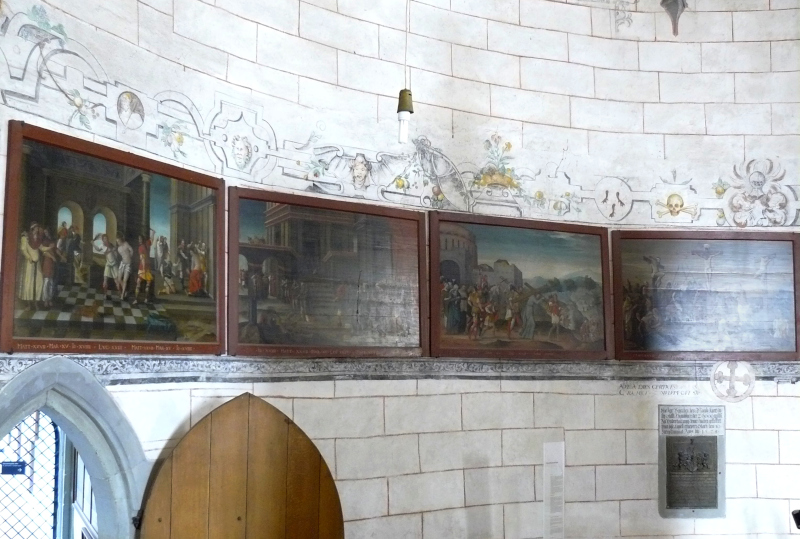 mehr anzeigenDomherr Kurtz engagierte für sein Ausstattungsprojekt in der Rotunde den zu jener Zeit gefragtesten Münstermaler Samuel Metzler (1542-1601). Darauf weisen seine erst jüngst entschlüsselten Initialen in der Gewölbemalerei hin. Kurtz muss als Verwalter der Münsterfabrik mit dem begehrten und häufig beauftragten Konstanzer Künstler in engem Kontakt gestanden haben.Hauptwerk der Neuausstattung sind die großformatigen Bildtafeln von 1561 im manieristischen Stil. Sie zeigen die Passion Christi vom Abendmahl bis zur Auferstehung. Oft sind mehrere Ereignisse simultan dargestellt, wobei die räumliche Aufteilung das zeitliche Nacheinander der Szenen verdeutlicht. Dies erlaubt dem Betrachter, sich im Sinne der imitatio Christi, der Nachfolge Jesu, in den biblischen Ereignisraum der Bilder hineinzuversetzen. Diese Rezeptionsweise ist im Kontext der für das 16. Jahrhundert typischen Frömmigkeitsübungen des Ignatius von Loyola zu sehen. In ihnen spielten die Betrachtung und Verinnerlichung des Leben Jesu eine wichtige Rolle. Die Rotunde wird so zum Jerusalem der Passion Christi, in der sich die heilsgeschichtliche Vergangenheit und die Gegenwart des Betrachters verbinden.