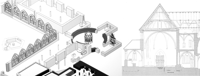 Ausschlaggebend war auch hier der Anschluss an überregionale Standards der Bau- und Bildkunst. Im 13. Jahrhundert war die Glasmalerei zunächst in Frankreich zu einem Leitmedium im Rahmen der neuen gotischen Skelettbauweise geworden. Diese neue Bild- und Baukunst hält mit der Miniaturarchitektur des heiligen Grabes und dem Umbau der Mauritiusrotunde auch Einzug in Konstanz. Die Rotunde hatte vermutlich seit ihrer Gründung nur Fensterschlitze, die den Innenraum kaum beleuchteten. Was für eine gegensätzliche Wirkung müssen die fast acht Meter hohen Lanzettfenster vermittelt haben: Sie entfalten ein farbenprächtiges Lichtspiel, das die neuen Kunstformen um eine weitere Facette bereichert. Beim Versuch, den Sakralraum als Abbild des himmlischen Jerusalems erscheinen zu lassen, wird immer deutlicher eine ästhetische Komponente ausgespielt. Auch der gotische Grabbau wird durch den Lichteinfall neu in Szene gesetzt: Die farbigen Figuren erscheinen durch die teils schlaglichtartige Beleuchtung fast lebendig. So verstärkt sich die Wirkung des am Grabbau inszenierten Heilsgeschehens, das wie ein in der Rotunde real erlebtes Ereignis in Erinnerung bleiben sollte. weniger anzeigen