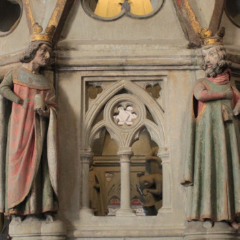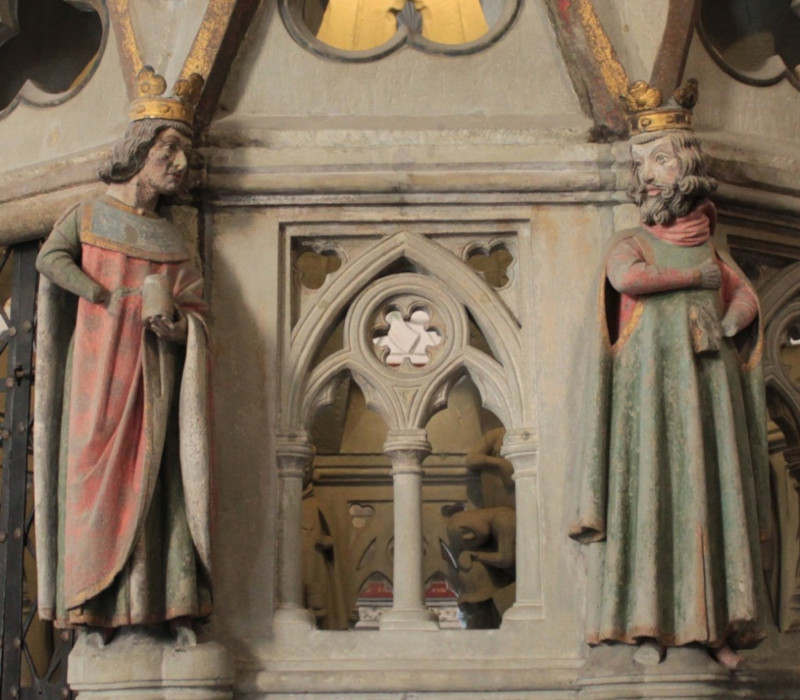 Die drei Könige aus dem Morgenland haben sich auf den Weg gemacht (Mat 2, 1-12). Zwei Könige, Balthasar und der Jüngling Kaspar, folgen mit ihren Gaben dem ältesten König, der schon ein Stück voraus ist. Balthasar wendet sich Kaspar zu und verweist auf das nahe Ziel.