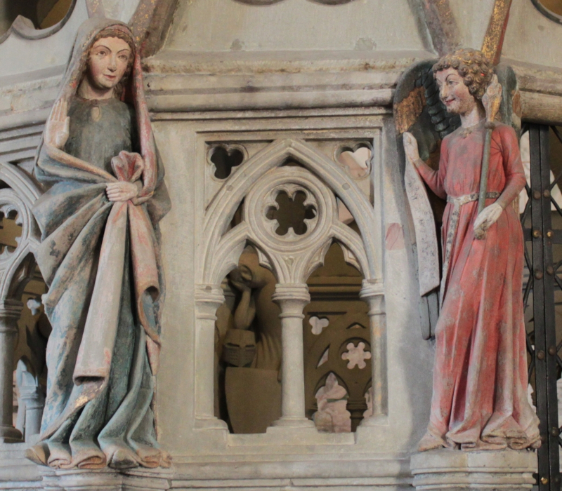 Neckisch lächelnd wendet sich der Erzengel Gabriel an die Jungfrau Maria, um ihr die wichtige Rolle zu verkünden, die sie im Heilsplan einnehmen wird:
