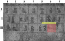 "Ich liege hier wie es alle Mädchen sollen. Hinter dem Ofen ist mir wohl." Der Titulus hat hier Überlänge, was mit einer Verkürzung der Tituli in den ersten vier Bildern erkauft wurde. Erst mit diesem Bildfeld schließt der Titulus wieder bündig mit dem rechten Rand des Bildfelds ab. weniger anzeigen