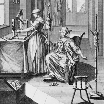 Die Fresken im Haus zur Kunkel stehen am Anfang einer langen Motivgeschichte. Die Darstellungen von Engelbrecht (Abb. 1) und Heyden (Abb. 2) aus dem 17. und 18. Jahrhundert propagieren Tugendideale und führen vor, wie die Hausfrau im privaten Raum der Handarbeit nachgehen und damit auch Müßiggang vermeiden soll.