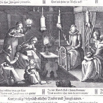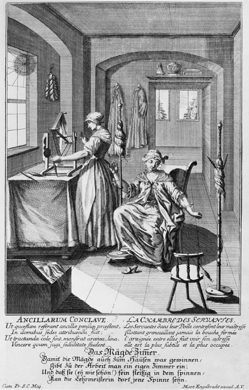 Martin Engelbrecht, In der Spinnstube, um 1730, Kupferstich