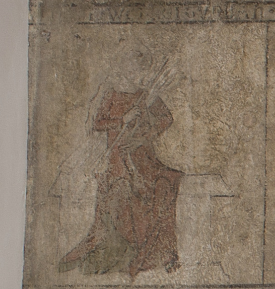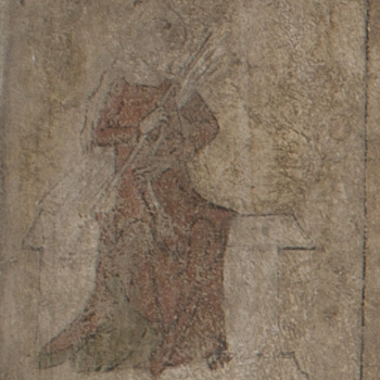 Der über dem Bild beginnende Titulus lässt uns den Ausgangsstoff als Hanf und den Vorgang als ersten Schritt der Hanfverarbeitung identifizieren: "RANF ICH WOL REITVR BAN", wobei "REITVR" im Sinne von "zurüsten, bereiten" gelesen wird. "Hanf kann ich gut bereiten." Das Mädchen, welches der Haartracht nach zu urteilen unverheiratet ist, bricht und entbastet, sie löst also die Faser aus dem Bast und entfernt die ersten Holzteile (vgl. auch Abb. 2 und 3). weniger anzeigen