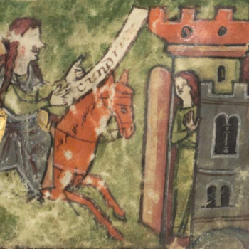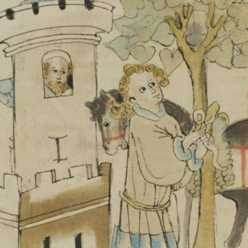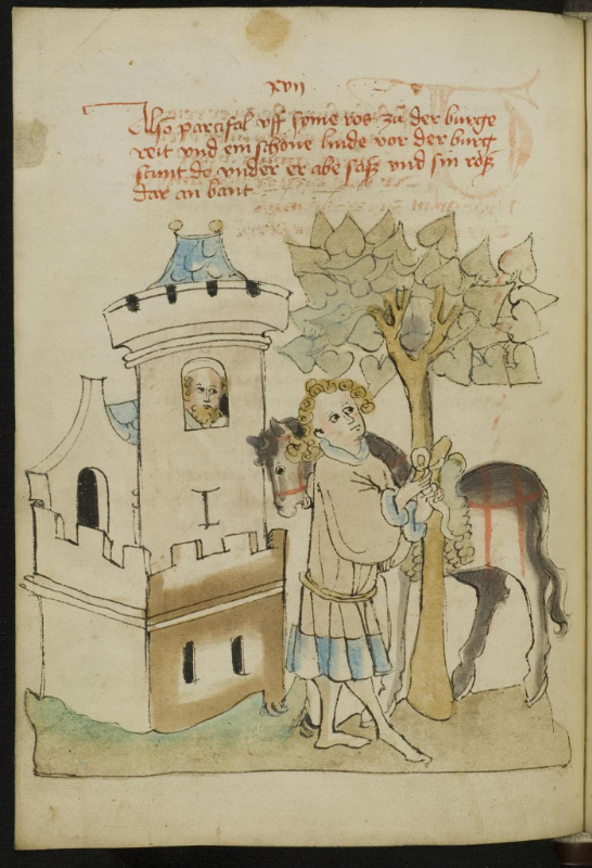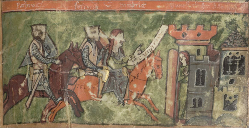 Parzival und zwei Lanzenreiter (173, 18ff.) / Gurnemanz heißt Parzival willkommen (162, 25ff.)