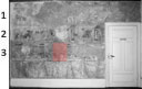 Analog zur vorangehenden Szene kann die rotgewandete Figur im linken Gebäude als Condwiramurs identifiziert werden. Bei dem nicht mehr sichtbaren Ritter auf dem Pferd handelt es sich wohl erneut um Parzival, den "roten Ritter", der am roten Gewandsaum gerade noch zu erkennen ist. Auf der einen Seite wird er von Condwiramurs verabschiedet, auf der anderen Seite an anderem Ort – vermutlich auf der Gralsburg – von einer anderen Person wieder in Empfang genommen.