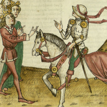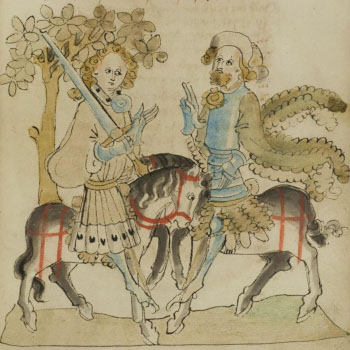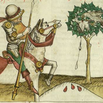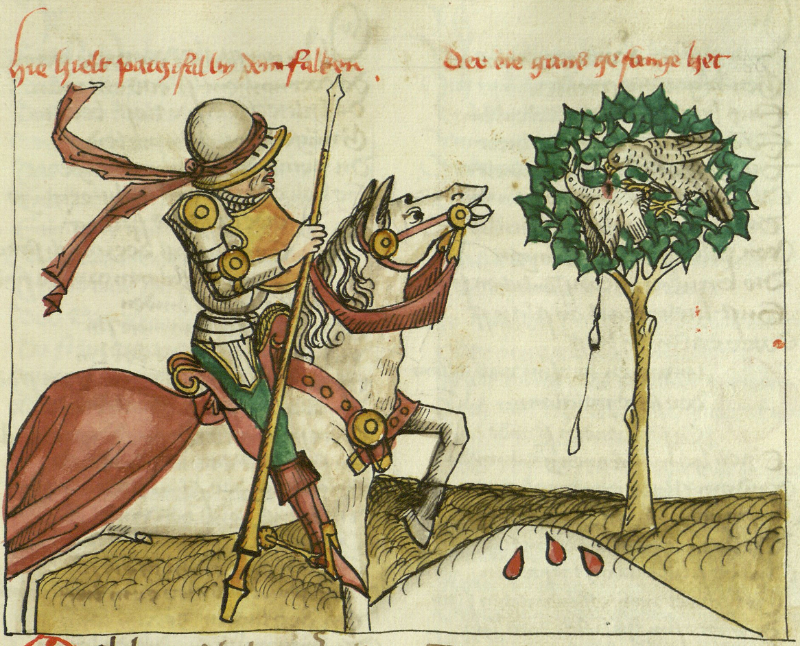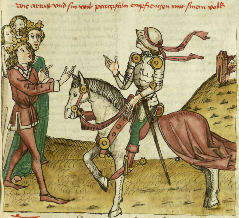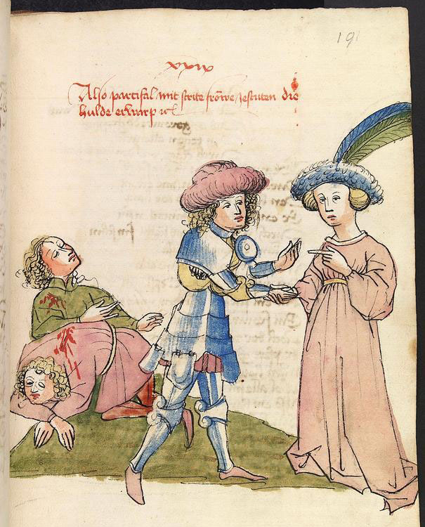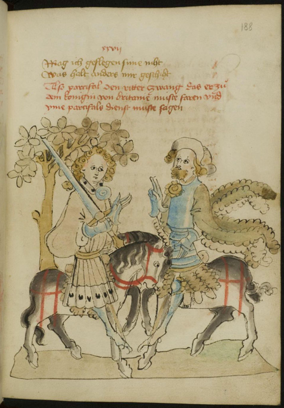 Zerstörte Szenen: Parzivals Kampf gegen Orilus (5. Buch, 260,12ff) / Blutstropfenszene (5. Buch, 281,23ff) / Parzival am Artushof (6. Buch, 309,3ff)