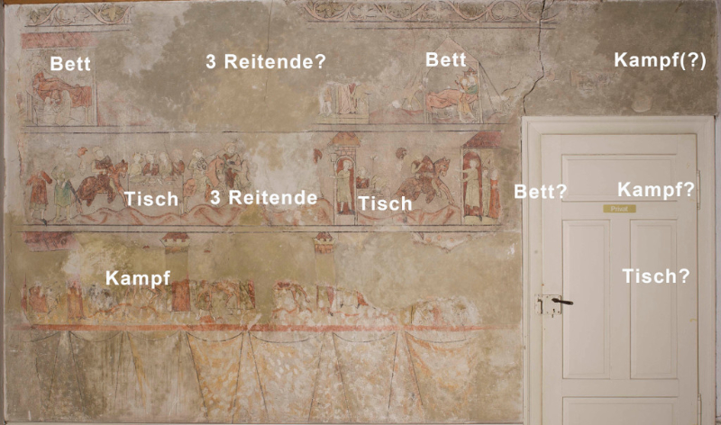 Wenn die Besitzer und Bewohner des Hauses, die Wandmalereien stolz ihren Besuchern zeigten und erklärten, mögen die Geschichten immer wieder neu erzählt worden sein. Dass die schönen Damen auf den Wänden neben Prahlereien mit Belesenheit und Kennerschaft auch zu manch zotigem Männerwitz eingeladen haben oder gar amouröse Abenteuer stimulieren und legitimieren konnten, ist natürlich nicht beweisbar, aber auch nicht von der Hand zu weisen.