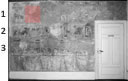 Ein breites Bildfeld unmittelbar neben der Geburtsszene ist komplett zerstört. Durch den Vergleich mit Eschenbachs Textvorlage und illustrierten Parzivalhandschriften kann über den verloren Inhalt gemutmaßt werden. Vermutlich handelte es sich um zwei Szenen, von denen die erste Parzival auf der Jagd zeigte.Herzeloyde zog nach Parzivals Geburt mit ihm und ihrem Gefolge in den Wald bei ...