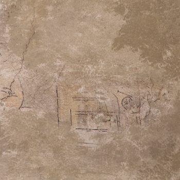 Für die Siguneszene spricht die Tatsache, dass Parzivals Base auch in der dritten Zeile des Freskos wieder auftaucht, dieses Mal auf der Linde sitzend. Da sie es ist, die Parzival über seine Herkunft aufklärt und ihm damit wichtige Informationen zukommen lässt, besitzt die Szene eine sehr hohe Relevanz für den weiteren Verlauf der Geschichte. Die Andeutung einer sitzenden Figur, könnte durchaus die erhöht sitzende Sigune darstellen. Die horizontalen Linien würden sich auf den quer über ihren Schoß gelegten Schionatulander beziehen (vgl. Abb. 3 und 4). Rechts an der Wand bliebe auf alle Fälle noch genügend Platz für eine weitere Station bei der Annäherung an den Artushof und die Kampfszene gegen Ither. weniger anzeigen