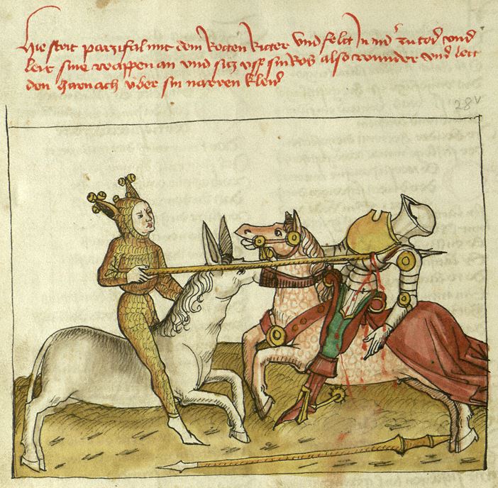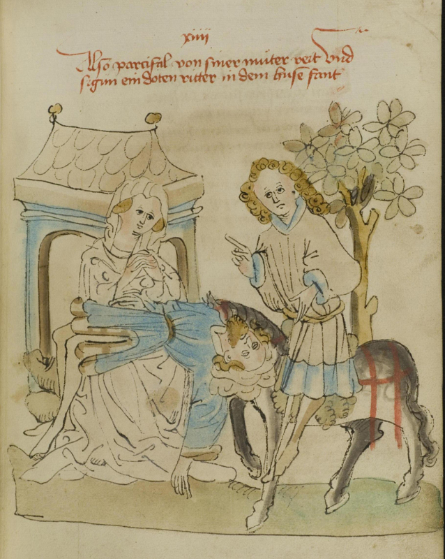 Zerstörte Szenen: Parzival und Sigune (3. Buch, 138,9ff) / der Fischer (3. Buch, 142,13ff) / Parzival tötet Ither (3. Buch, 153,21ff)