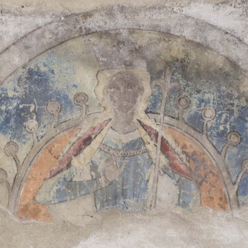 Auf dem prächtig funkelnden Königssitz vor blauem Himmel thronend, strahlt die Königin der Tugenden eine Atmosphäre kosmologischer Herrschaftlichkeit aus. Mit ihrer segnenden Geste wendet sie sich direkt zum Betrachter, der das Haus an dieser Stelle betritt oder verlässt. Bei Prudentius ist die Weisheit Sapientia das ersehnte Ziel des Seelenkampfes, in der auch antike und christliche Tugendvorstellungen konvergieren. Im Haus zur Kunkel wirkt die thronende Figur wie eine schon leicht augenzwinkernde Wiederholung des alten Versprechens, aus dem Bildprogramm eine klare moralische Handlungsanweisung ziehen zu können. weniger anzeigen
