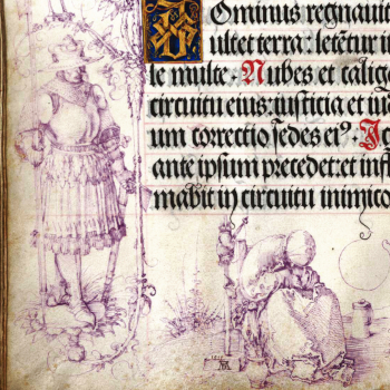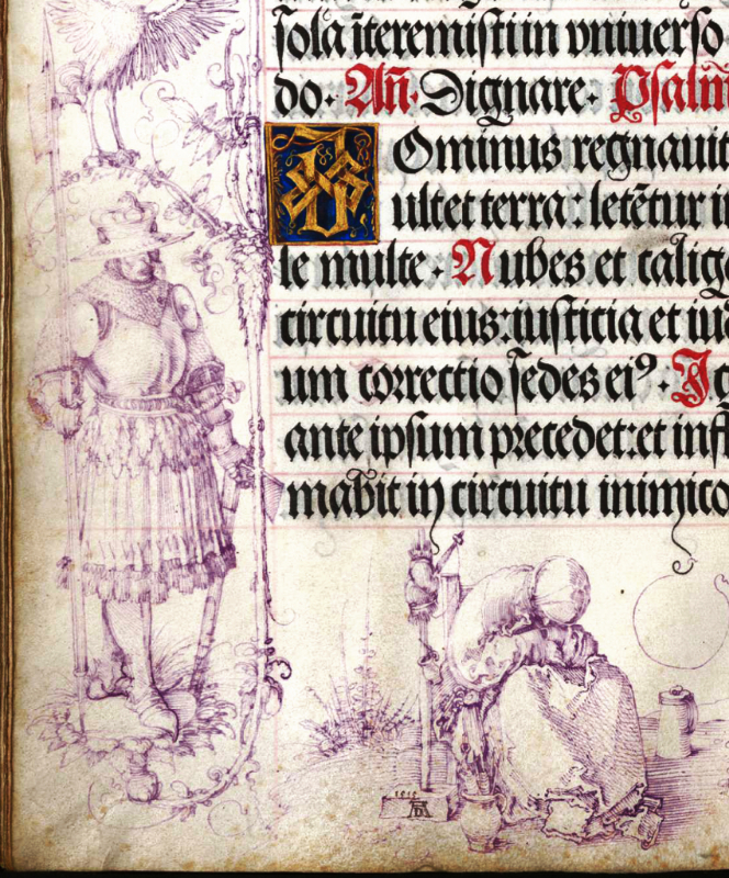 • Abb. 1 von 2 - Bildquelle: Albrecht Dürer, Randzeichnung im Gebetsbuch Kaiser Maximilians, 1514/5, 2° L. impr. membr. 64, fol. 48v (Ausschnitt, Kontrast digital erhöht), Bayerische Staatsbibliothek, München