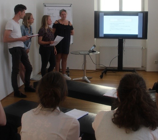 Die Gruppe des virtuellen Rundgangs stellte ihre Überlegungen zur Umsetzung vor. Sollte der Rundgang nur vor Ort oder auch digital über die Homepage abrufbar sein, welche Stationen sollten in jeder Etage mit Informationen ausgestattet werden, welche Besuchergruppen sollten einbezogen werden und wie ließe sich dies alles technisch umsetzen. (Zur Tour Virtueller Rundgang)