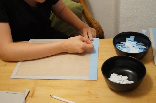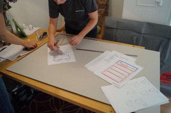 Nach der Ausarbeitung der Pläne ging es nun daran, die einzelnen Bauteile auf die speziell für Architekturmodelle angefertigten Platten aus Hartpappe zu übertragen. Hier ist absolute Konzentration und Millimeterarbeit gefragt, im Maßstab 1:100.