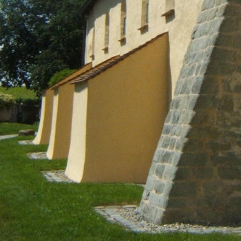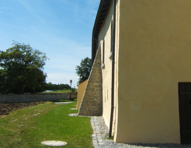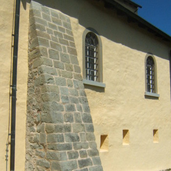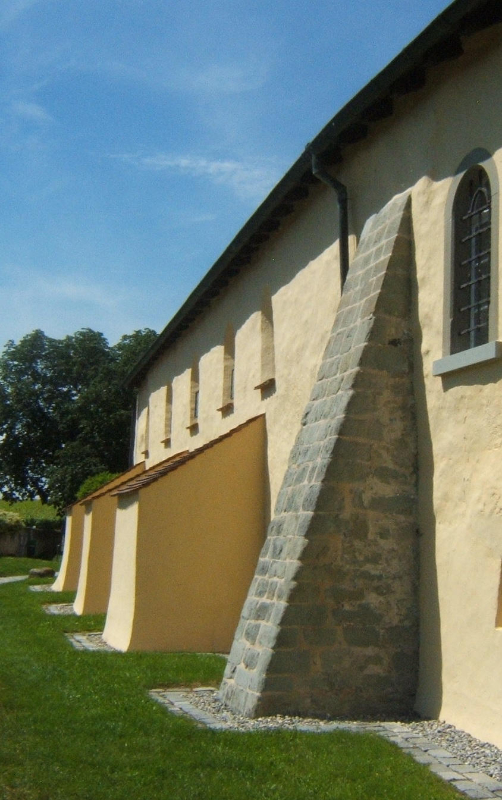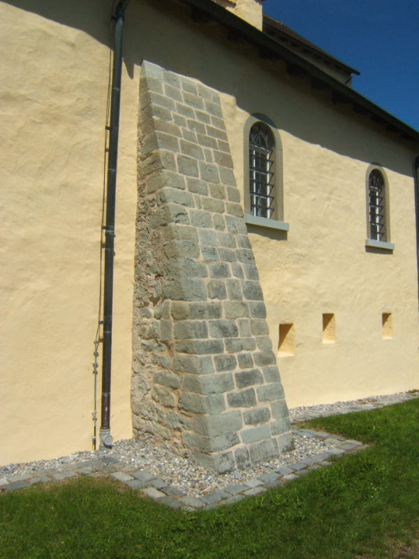 Die vier Stützpfeiler auf der Südseite gehören zu nachträglichen Bauveränderungen. Obwohl die Wände breit angelegt waren, mussten wiederholt Stützen angebaut werden, um den Kirchenbau zu stabilisieren.Ein genaues Datum der Umgestaltung ist nicht bekannt, doch zeigen Mörtelschichten, die auf die Pfeiler zulaufen, dass sie nicht vor dem Spätmittelalter entstanden sein können. (Dörthe Jakobs, Bd. 1, S. 220) Deutlich später hingegen wurde der östliche Stützpfeiler angebracht, welcher flach ausläuft und sich im Vergleich zu den drei älteren Blockpfeilern unauffälliger in das Kirchenbild einfügt.