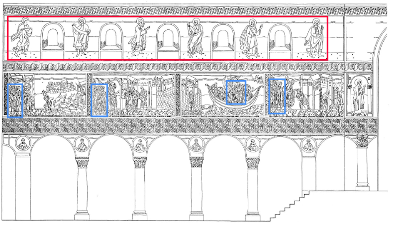 Wer die Aposteldarstellungen im Obergaden oder aber den Wunderzyklus darunter betrachtet, stellt fest: Die Apostel sind ein wichtiger Bestandteil beider Bereiche der Wandgestaltung. Mit Überlegungen des Kunsthistorikers Wolfgang Kemp zu christlichen Bildsystemen können wir dieses doppelte Auftreten besser verstehen.Im Obergaden sind die Apostel Teil einer quasi himmlischen Ordnung: sie ...