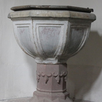 Das Taufbecken wurde im Rahmen einer neuen Raumkonzeption am Ende des 19. Jahrhunderts umgestellt. Ziel war die Restauration der Wandgemälde. Dafür mussten auch einige architektonische Umbaumaßnahmen vorgenommen werden, die das Innere der Kirche betrafen.