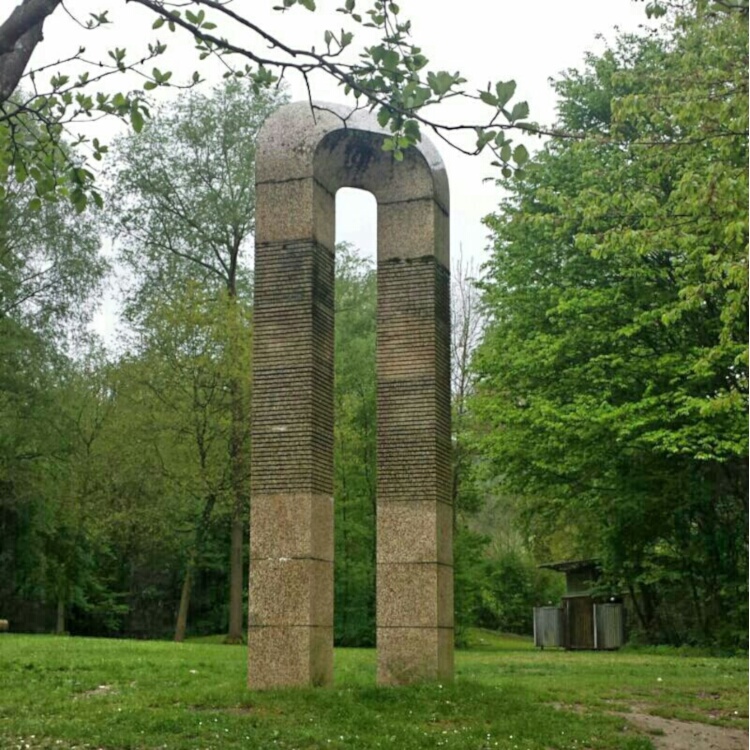 Das ungefähr viereinhalb Meter hohe Kunstwerk auf dem Wassersportgelände der Universität ist aus Granit gefügt. Der kostbare Stein zeigt an seiner Oberfläche ein Farbspektrum, das zwischen Braun, Grau und Weiß variiert. Zwei Pfeiler, die beide aus acht aufeinanderliegenden Quadern bestehen, sind oben durch einen flachen Bogen zusammengefasst und bilden so, der Form nach, ein ... mehr anzeigenDas ungefähr viereinhalb Meter hohe Kunstwerk auf dem Wassersportgelände der Universität ist aus Granit gefügt. Der kostbare Stein zeigt an seiner Oberfläche ein Farbspektrum, das zwischen Braun, Grau und Weiß variiert. Zwei Pfeiler, die beide aus acht aufeinanderliegenden Quadern bestehen, sind oben durch einen flachen Bogen zusammengefasst und bilden so, der Form nach, ein hochgestelztes Tor. Die mächtigen Pfeiler sind dadurch gegliedert, dass auf mittlerer Höhe jeweils in vier Blöcke schmale, tiefe Rillen eingelassen sind, die rund herum geführt werden. Beide Pfeiler sind diagonal gestellt, sodass ihre inneren Kanten einander zugewandt erscheinen. Dadurch entsteht auf beiden Seiten eine den Durchgang rahmende Vertiefung. Die Funktion eines eigentlichen Durchgangs hat das Stein-Tor freilich nicht. Es ist ein ästhetisches Gebilde, das der Anschauung dient.Elmar Daucher wurde 1932 in Neuenburg am Rhein geboren. Nach einer Ausbildung als Steinmetz studierte er Bildhauerei an der Staatlichen Akademie der Bildenden Künste in Stuttgart. Daucher arbeitete ab 1968 in Oggelshausen und wurde kurz darauf einer der Initiatoren des Bildhauersymposions der Stadt. Zu seinen Werken zählen zahlreiche Reliefs und Steinskulpturen. Eines seiner wichtigsten Werke ist das 1970 entstandene Mahnmal für die Opfer des Nationalsozialismus vor dem Alten Schloss in Stuttgart. Ab 1974 entstanden sogenannte Klangsteine, auch Summsteine genannt. Daucher starb 1989 in Oggelshausen. weniger anzeigen
