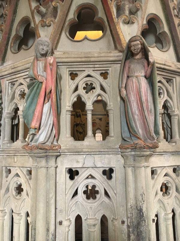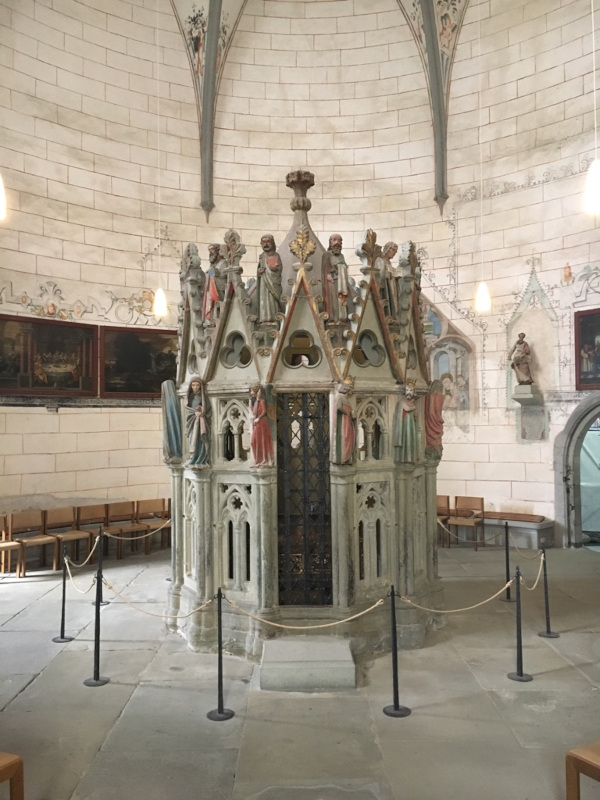 Mit der charakteristischen Form und dem zentral positionierten Heiligen Grab besteht ein direkter Bezug zur Grabeskirche in Jerusalem, welcher sie mit einem Durchmesser von 11,3 m im Maßstab von 1:2 nachempfunden ist. Das heutige Heilige Grab, das die Grabstelle Christi repräsentiert, entstand 1260/70 im Stile der französischen Gotik. Es ist ein zwölfeckiger, ca. 4,65m hoher und im Durchmesser etwa 2,43m breiter Zentralbau aus Sandstein. Die Wände, die aus je zwei Platten mit durchbrochenem Maßwerk bestehen, werden von zwölf Pfeilern und den sich darauf befindenden ehemals farbigen Skulpturen unterbrochen. Das Zeltdach besteht aus Zinnen in Form von Wimpergen, die mit Dreipässen durchbrochen werden. In den Zwickeln der Giebelkrönung sind die Figuren der zwölf Apostel zu sehen. Während die äußeren Figuren Szenen aus der Kindheit Jesu zeigen, finden sich im Inneren des Heiligen Grabes drei Szenen aus der Grablegung Christi: der Erwerb von Salbe beim Apotheker Hippokras, die Wächter am Grab Jesu und die drei Marien, denen ein Engel erscheint.