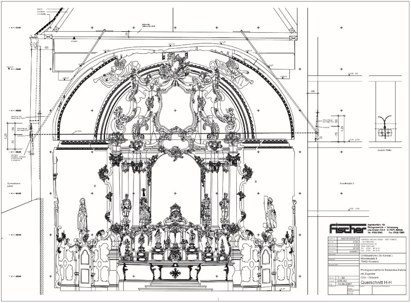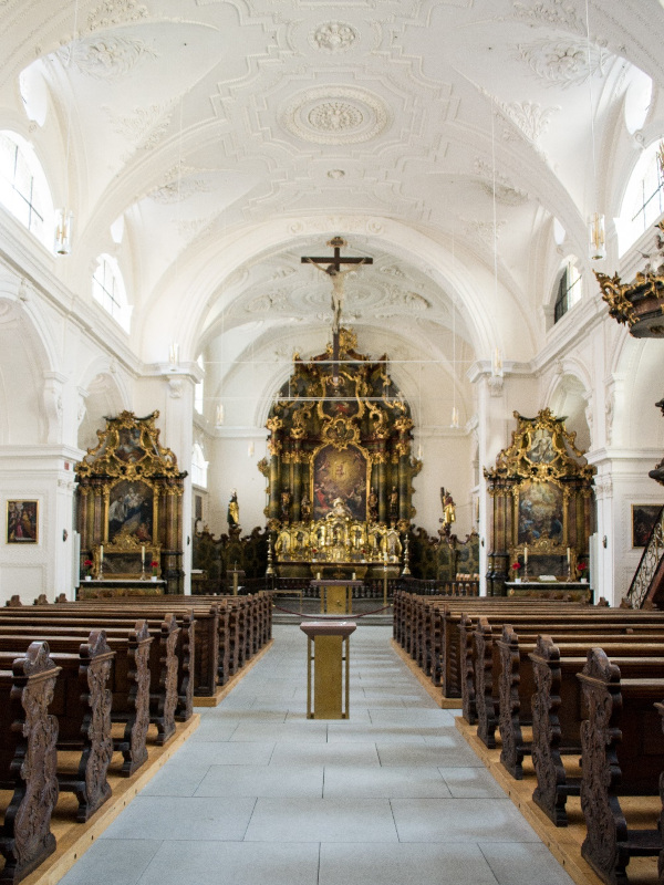 Die vom Jesuitenbaumeister Stephan Huber geplante Wandpfeilerkirche wurde zwischen 1604 und 1607 als Jesuitenkirche erbaut und dem heiligen Konrad gewidmet. Der zwischen dem ehemaligen Jesuitenkolleg und Jesuitengymnasium errichtete Sakralbau hat eine nicht zu vernachlässigende Baugeschichte hinter sich, doch wurde durchgehend der Barockstil beibehalten. Sie zählt zu den stilreinsten ... mehr anzeigenDie vom Jesuitenbaumeister Stephan Huber geplante Wandpfeilerkirche wurde zwischen 1604 und 1607 als Jesuitenkirche erbaut und dem heiligen Konrad gewidmet. Der zwischen dem ehemaligen Jesuitenkolleg und Jesuitengymnasium errichtete Sakralbau hat eine nicht zu vernachlässigende Baugeschichte hinter sich, doch wurde durchgehend der Barockstil beibehalten. Sie zählt zu den stilreinsten Kirchen in Konstanz.Schon 1682 erfolgt der erste Umbau: die flachgedeckte Holzdecke wird durch ein Tonnengewölbe mit Stichkappen und barockem Stuck ersetzt. Keine 100 Jahre später erhält die Kirche ihre heutige Ausstattung. Doch die eigentlich nicht für ein Gewölbe konzipierte Kirche scheint 1930 schon einsturzgefährdet zu sein und muss deshalb mit einem Stahlgerüst gestützt werden. 2007 folgte dann der Schock: nach dem Orkan „Kyrill“ hat sich das Chorgewölbe enorm abgesenkt und droht einzustürzen, doch durch Zugstangen und weitere Sicherungsmaßnamen ist das Gewölbe seit 2014 wieder sicher, bleibt aber unter Beobachtung. Die Sicherung zählte zu den langwierigsten und technisch anspruchsvollsten Denkmalbaustellen in Baden-Württemberg.