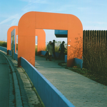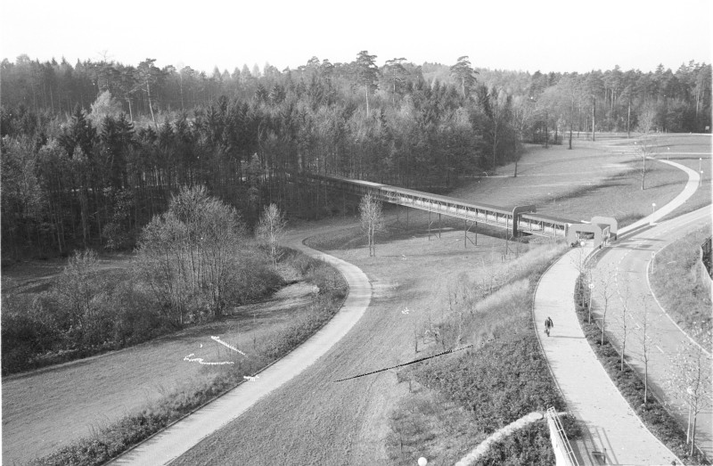 „Ohne Titel“ von Georg Karl Pfahler wurde 1975 an der Universität Konstanz realisiert, nachdem er 1969/70 den Wettbewerb zur Kunst am Bau gewonnen hatte. Die Brückenskulptur markierte den Ein- und Ausgang zu einer damals bestehenden Fußgängerbrücke zwischen ... mehr anzeigenDer Brückenkopf wurde im Frühjahr 2023 wegen der aktuellen Bauarbeiten demontiert und kann daher nicht besichtigt werden.
