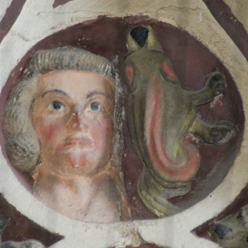 Dieses Medaillon steht für den zweiten Typ von Darstellungen: Die Darstellung eines menschlichen Kopfes findet sich zusammen mit einem Tier in einen Kreis gepresst. Die Darstellungen wirken wie die parodierende Wiederholung einer moralischen Hochsemantik, die die Wirklichkeit beständig in gut und böse aufteilen will.