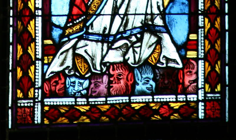 Unter den Füßen von Maria Magdalena befinden sich Köpfe der sieben Teufel, die aus ihr ausgefahren waren. (Lk 8,2).