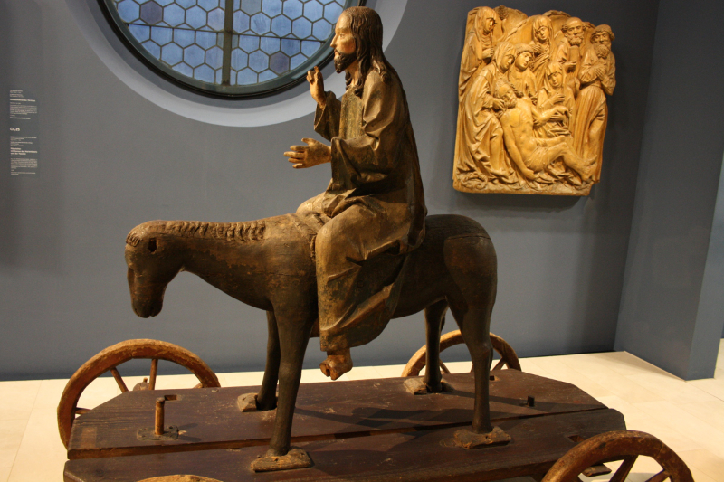Als Andachtsbild, das zum stillen Gebet oder Nachdenken einladen soll, bietet die Heilig-Grab-Gruppe ihrem Betrachter nicht nur den Tod, sondern vor allem die Auferstehung. Eine solche Rahmung wird durch die Anwesenheit der teilweise sogar lächelnden Frauen, aber auch durch die Figuren auf der Wimpergbekrönung der Kapelle vorgenommen, von denen eine den bereits auferstandenen Jesus darstellt. weniger anzeigen